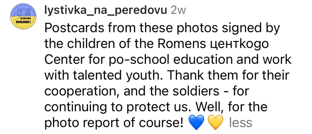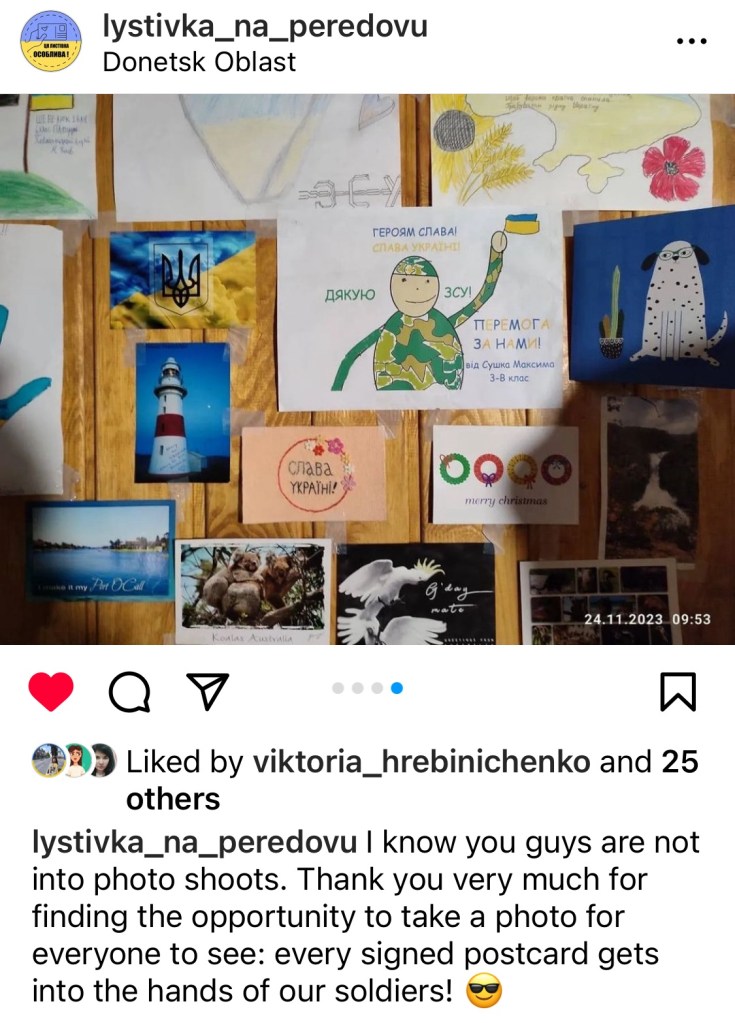 Thank you @lystivka_na_peredovu for sharing photos and messages!