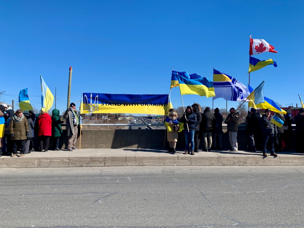 During the February 24th Global Day of Action to support Ukraine, residents of Oshawa, Ontario and area participated in their weekly rally on the Albert Street bridge over Highway 401 as well as signed a Canada/Ukraine flag. Of course, they also wrote many postcard messages of support to Ukraine’s Defenders.