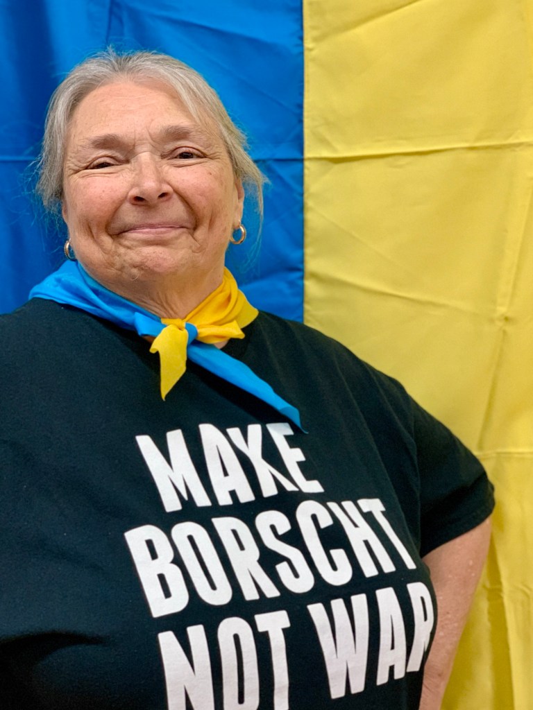 All week, we watched the Odesa Dancers perform, including their powerfully evocative finale, “The Heart of Ukraine.” We ate way too many cabbage rolls, varenyky (pierogi), shishkabob, and borscht (no, you can never eat too much borscht!). And we met a lot of very kind and caring people, including the folks at other tables, selling wares as fundraisers to support Ukraine.