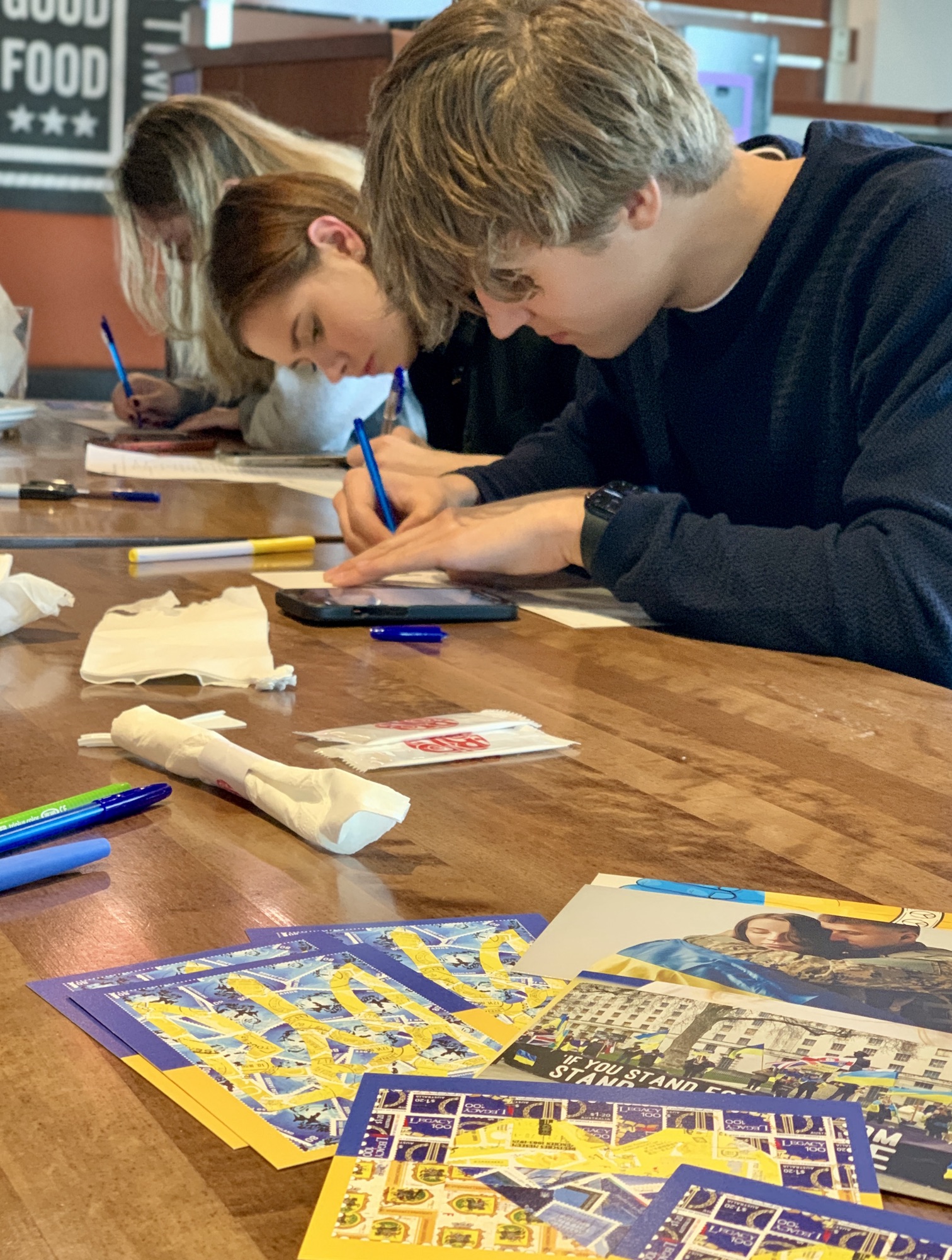 Thanks, once again, to Boston Pizza in Oshawa, Ontario for carving out space for our afternoon workshop, and for terrific hospitality! It always feels like home to us and to our Polish visitors. And thank you to the students who wrote beautiful messages of love and support to Ukraine’s Defenders! Dziękuję bardzo!