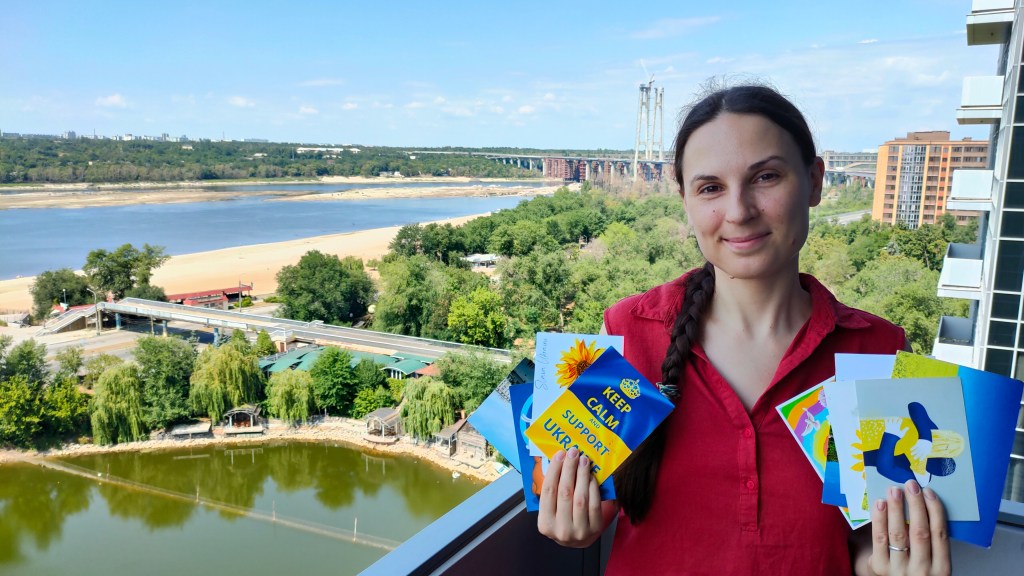 And then, Nadia shared, “the Postcards to the Front project made an incredible impression on me. Because it unites so many people in different parts of the world. This is a great project that helps Ukrainian Defenders. They need not only weapons to overcome the enemy, but also a word of support. Because the Ukrainian military is in difficult conditions. And I think that the postcards help them to hold on and continue to defend Ukraine.”