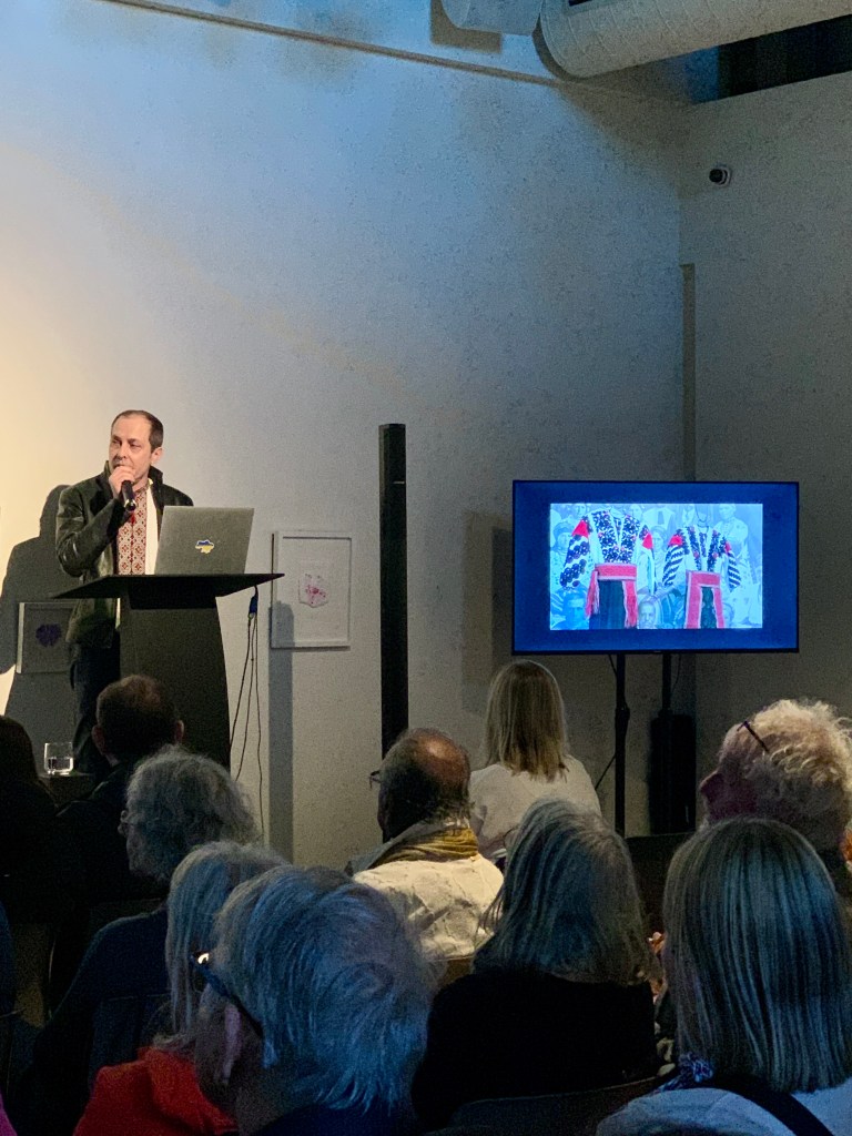 March 26 – We attended the very interesting talk given by curator Olex Wlasenko about the woodcut print art of Ukrainian-American artist Jacques Hnizdovsky at Whitby Station Gallery. A parallel exhibition ran concurrently at Sens Bookstore in Kyiv, Ukraine.
