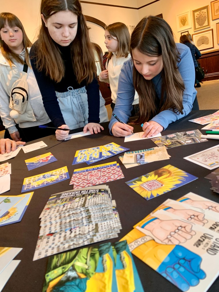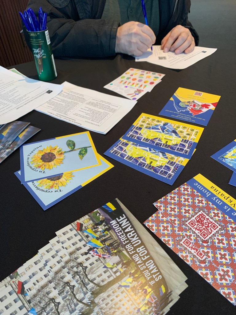 Also, we were invited to set up a table for gallery visitors to write postcard messages of support to Ukraine’s front line Defenders. Thank you Whitby Station Gallery!