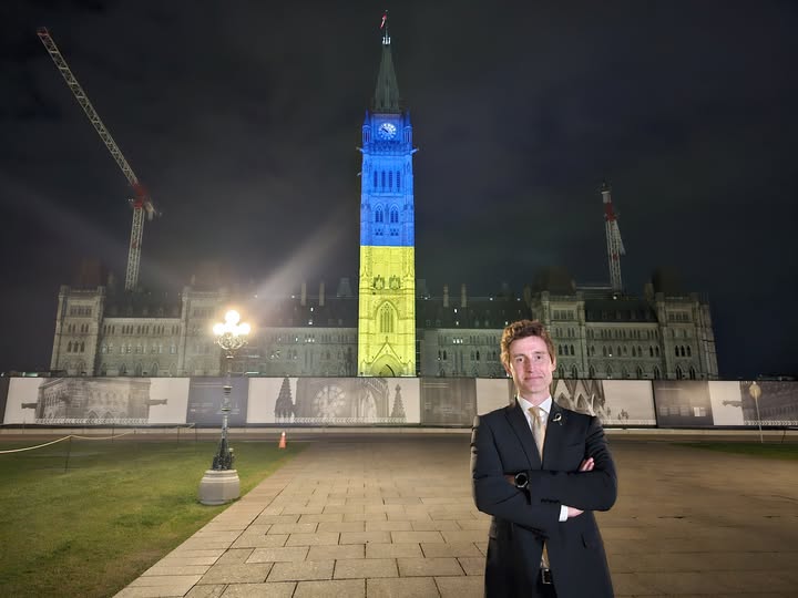 Yvan Baker, MP (Etobicoke Centre) arranged for Canada’s Parliament to be lit blue and yellow on February 24, 2024 “to mark two years of the Ukrainian people fighting for their freedom and ours … Ukraine’s victory is vital to Canada’s security, so we must ensure that the Ukrainian people receive the support they need to achieve that victory. Canada will stand with the Ukrainian people until they win.”