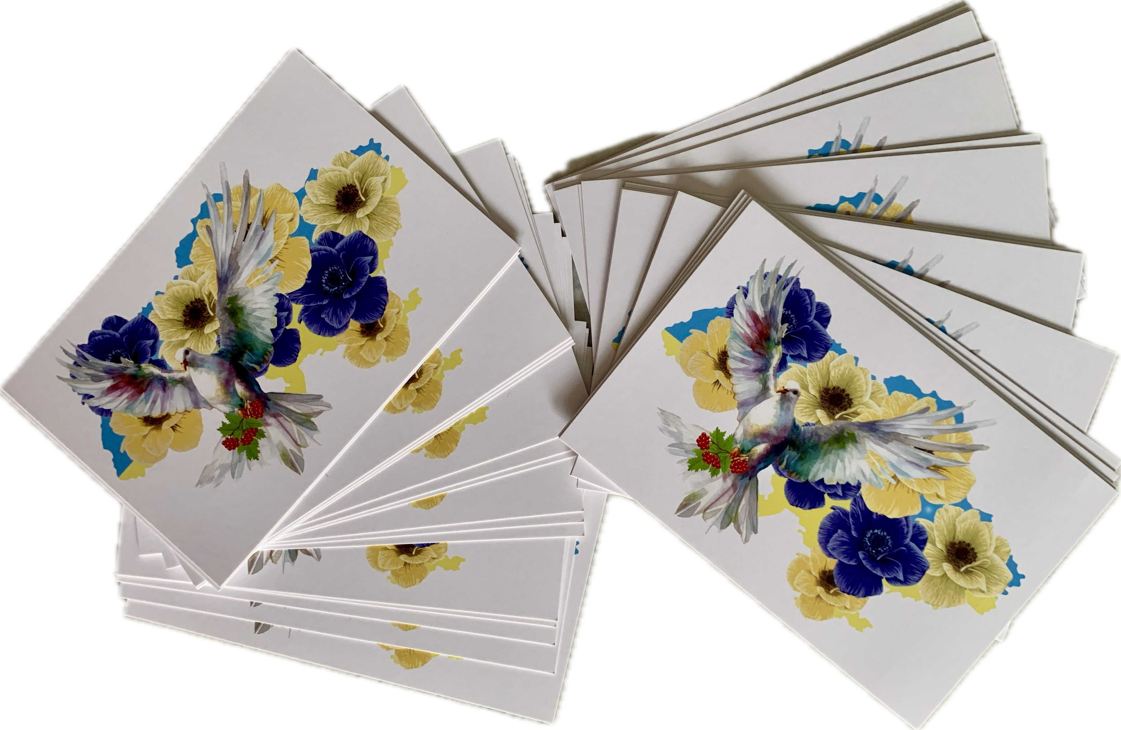 Connie wrote about her design process for creating these cards in “Saskatchewan artist reflects on Ukraine in postcard design“, published in our February 2024 newsletter.