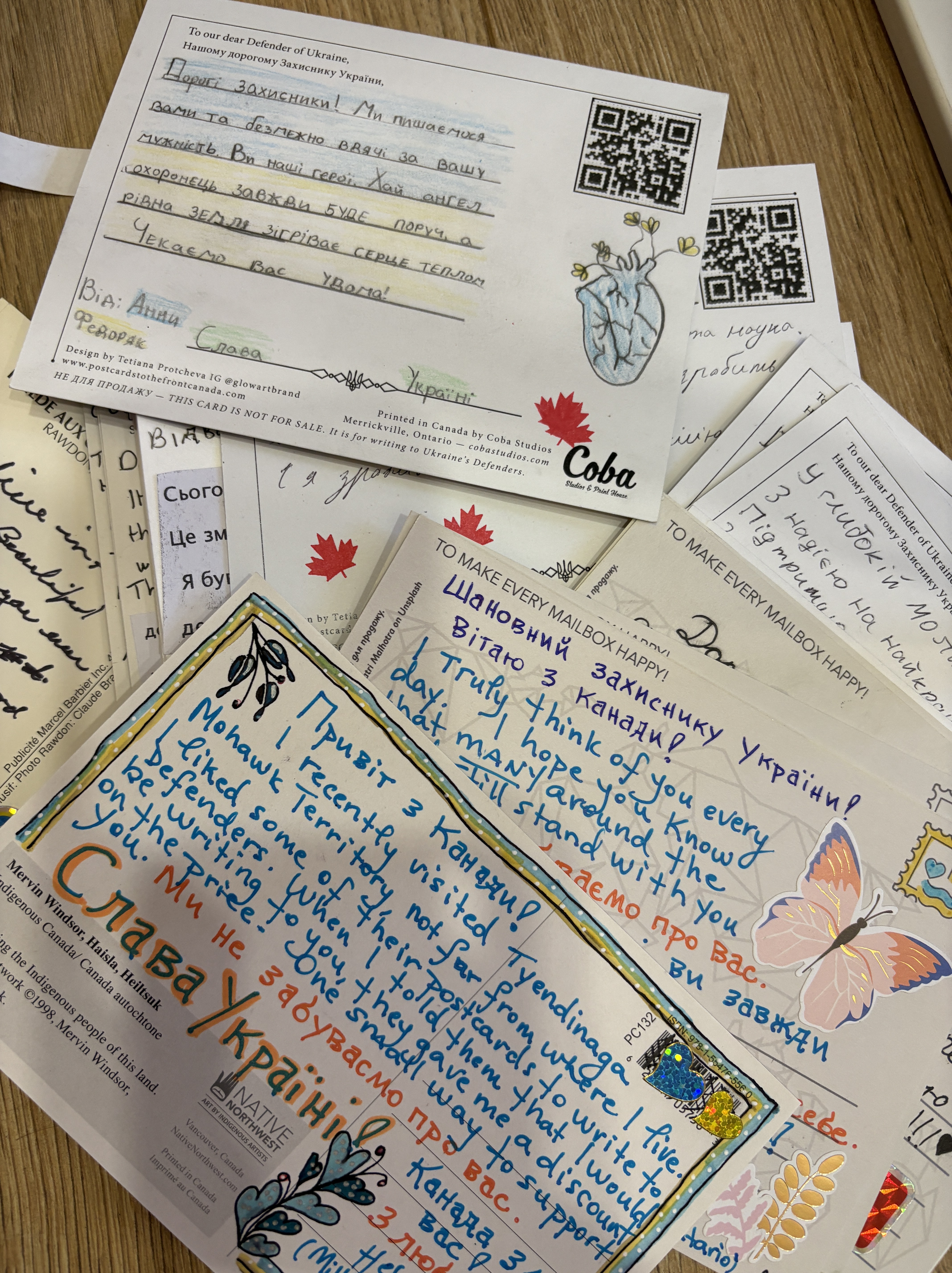 Along with supplies, your postcard messages boost morale at Ukraine’s front lines. They perform a vital role in supporting the mental health of Defenders. It matters to them, and to their families, that the world hasn’t forgotten them, that we support them, and that we care. Thank you!