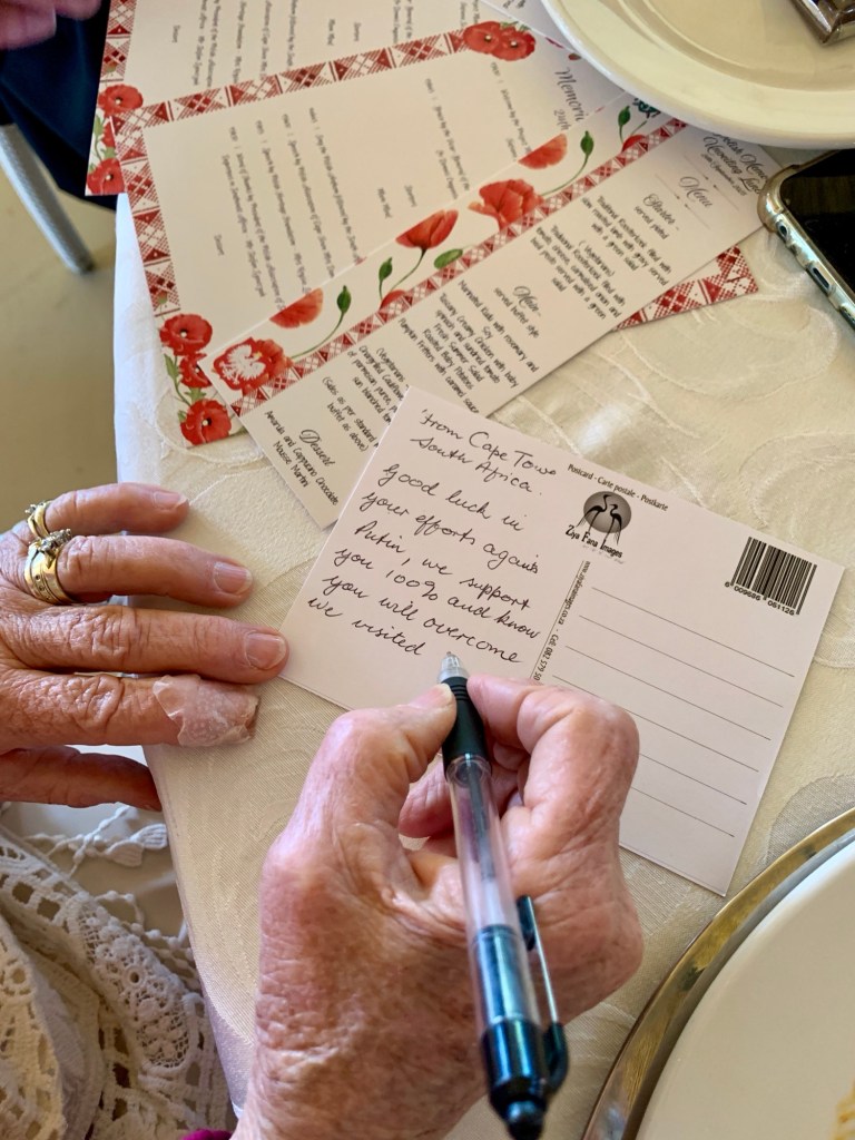 There, first-, second-, and third-generation Polish South Africans wrote postcards to Defenders of Ukraine. As well, we we were afforded the opportunity to meet with Dzvinka Kachur, Honorary President of the Ukrainian Association of South Africa (UAZA) [NPO # 189 – 705 representative], and shared with her about Postcards to the Front. Stay tuned … more about postcards for Defenders of Ukraine from South Africa coming in future posts!