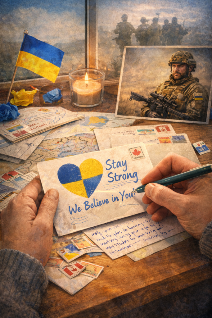Want to know more about Postcards to the Front? Join us at our upcoming Zoom gathering, Postcards That Carry Courage; a free information session co-hosted by DROK Academy and Kamloops Stands With Ukraine – IG: @kamloopswithukraine.