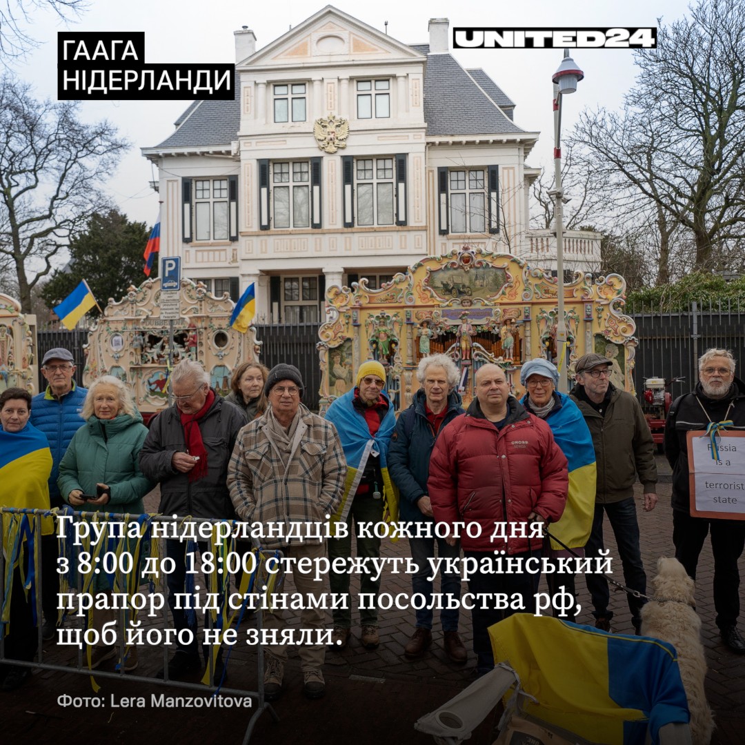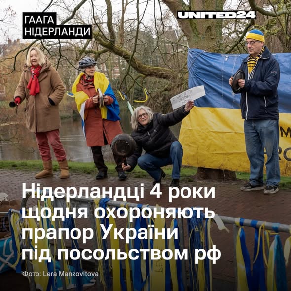 Not only are Canadians marching daily outside the russian embassy since February 24, 2022 — our friends in The Netherlands also march, AND protect the Ukrainian flag, every day for four years! Images from facebook.